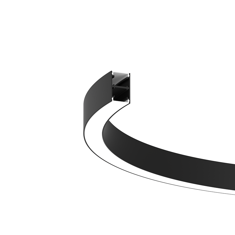 A surface-mounted or suspended curved aluminium profile with a distinctive “H” design, offering direct lighting in upward, downward, or combined configurations. Its versatile form allows for the creation of rings or mixed compositions of lines and curves in various lengths and angles. Ideal for fitness rooms, offices, displays, shopping centres, and other indoor commercial spaces.