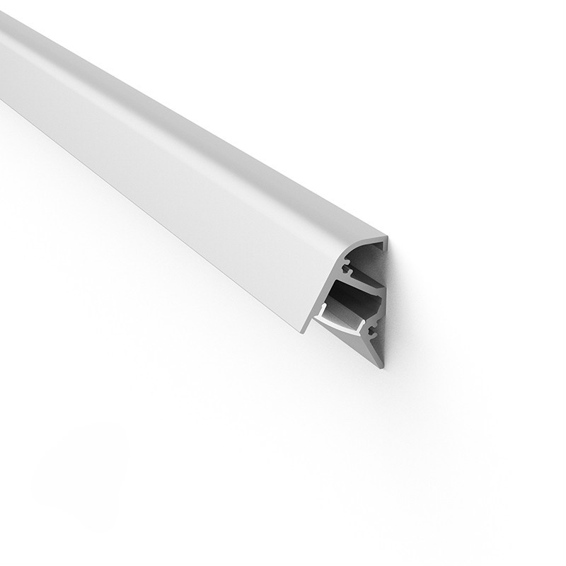 A surface-mounted aluminium profile featuring a 70° beam angle, designed for wall-washing applications. Its angled internal geometry directs light across vertical surfaces, making it ideal for highlighting architectural features or creating soft ambient effects.