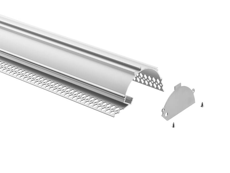A plaster-in aluminium profile featuring a semi-circular form for installation between plasterboard ceilings and walls. Its curved structure allows for flush integration, creating a smooth transition with a direct line of diffused light. Ideal for architectural applications in residential and commercial interiors where soft, built-in corner illumination is desired.