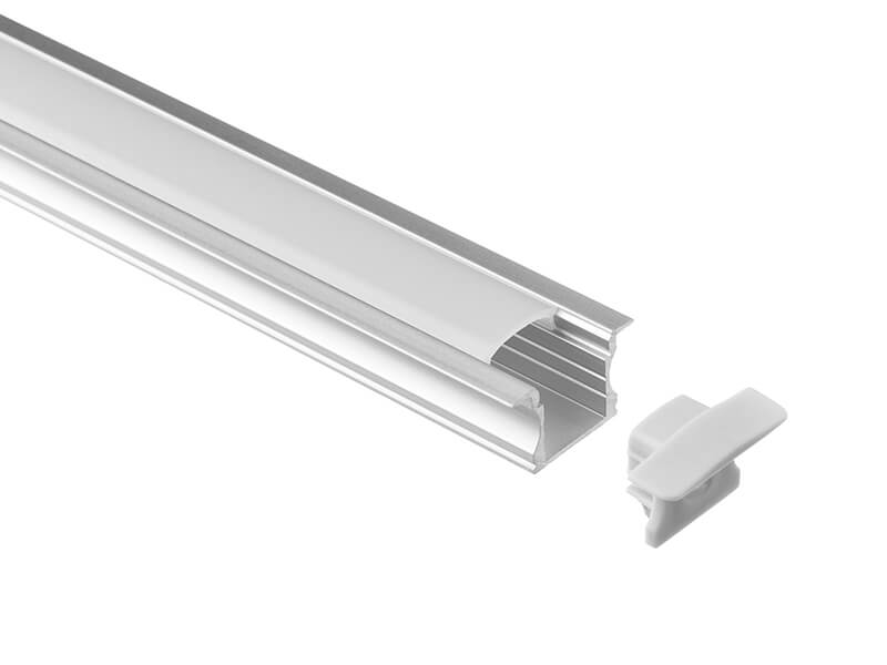 A recessed aluminium profile with a wide flange for secure mounting into ceilings or walls. The curved diffuser creates a focused light distribution, while the internal channel supports reliable LED strip installation. Ideal for general lighting where controlled output is required.