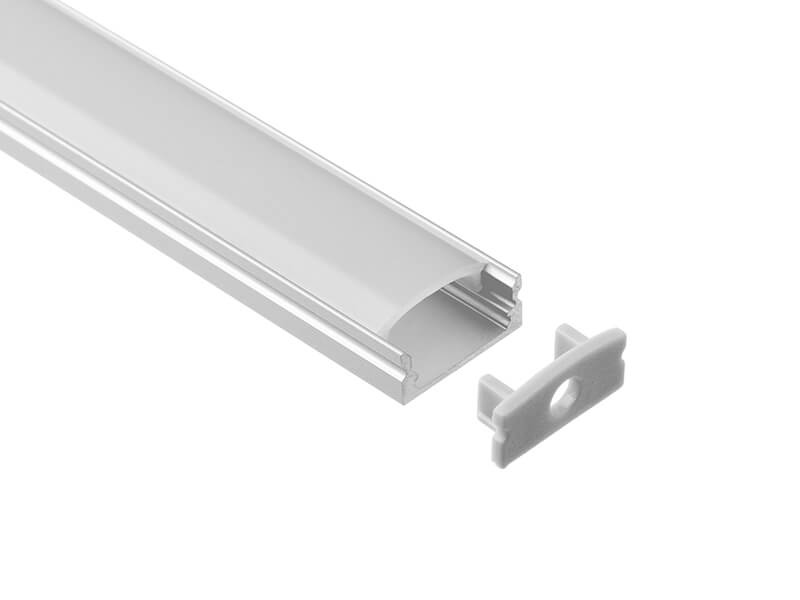 A surface-mounted aluminium profile designed for linear lighting applications on ceilings and architectural surfaces. The curved diffuser softens the beam and helps reduce visible LED points, delivering smooth, even illumination. Its shallow form offers a discreet surface presence, ideal for residential or commercial interiors seeking a clean lighting finish.