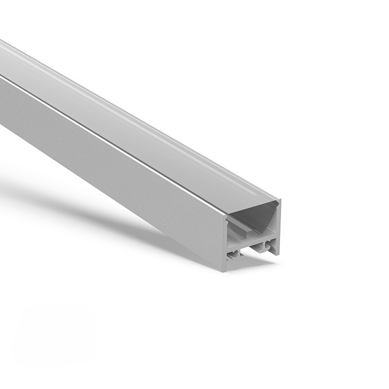 A surface-mounted or suspended aluminium profile equipped with a 60° focus lens for directional accent lighting. Its compact form makes it ideal for highlighting objects in cabinetry, shelving, or display cases—perfect for artwork, products, or decorative features requiring defined illumination.
